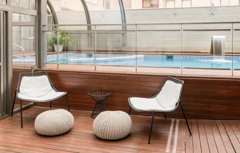 Piscina cubierta y climatizada situada en planta 1, dentro del wellness área, abierta de octubre a mitad de mayo (sujeto a condiciones metereológicas).