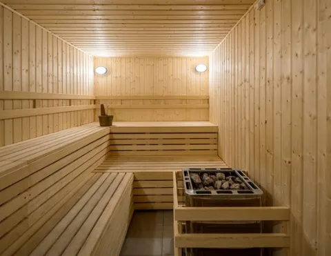 Zona de relax situada en la primera planta. Con duchas de contrastes, baño turco, sauna finlandesa, hamacas térmicas, jacuzzi incorporado, cascada cervical y zona fitness.