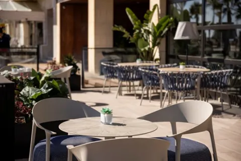 Además, cuenta con el espacio anexo a la terraza del Hotel, concebido como punto de encuentro para disfrutar de una copa con los amigos, en las tardes-noches de estío.