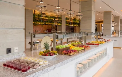 Ubicado en la Planta 0, donde poder disfrutar de un saludable y variado desayuno, almuerzo y cena bufé para todos los gustos y dietas.